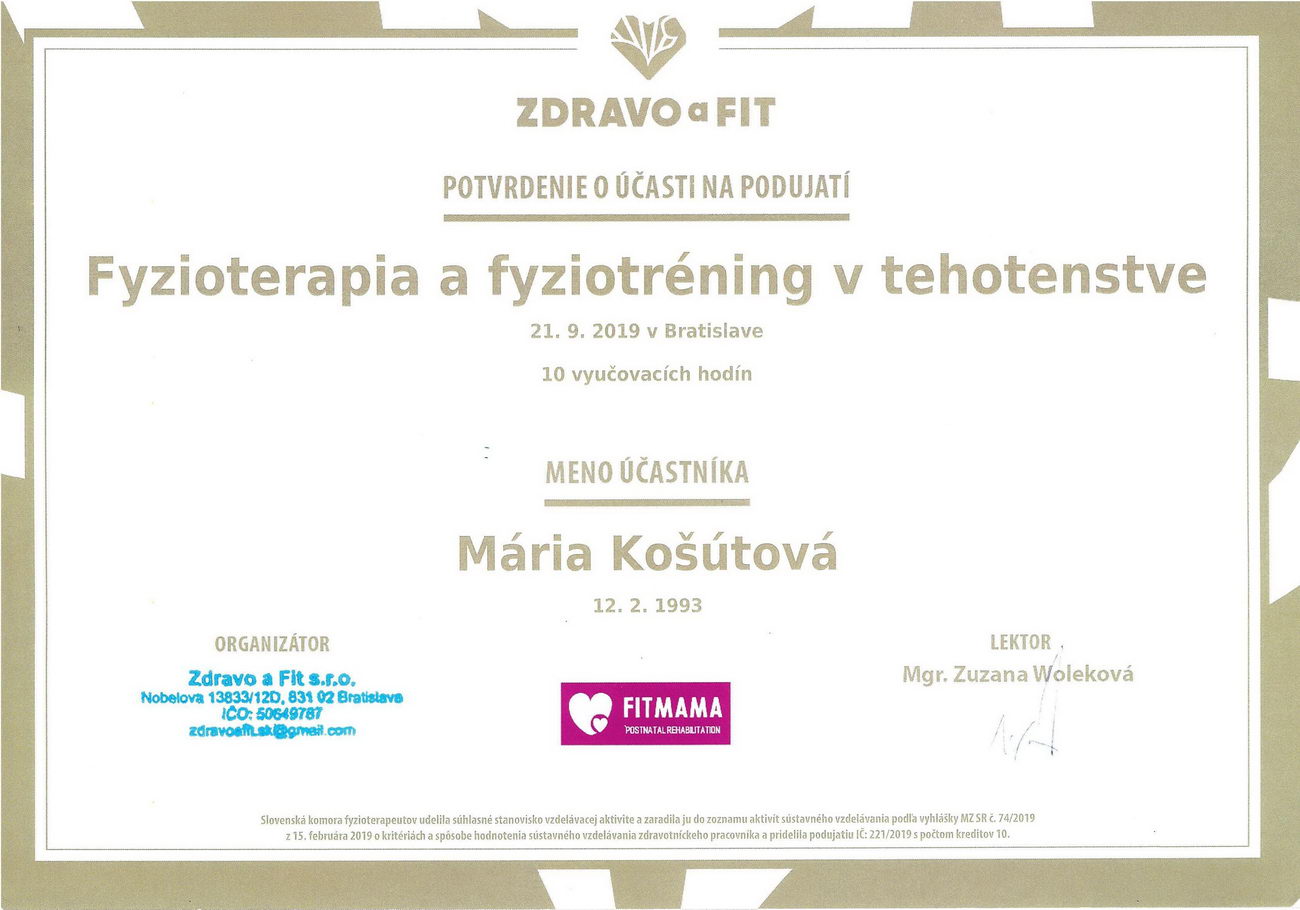 Pôrodná asistentka oddelenia gynekológie a pôrodníctva FNsP Žilina, laktačná konzultantka, asistentka výživy a mamička dvoch chlapcov. Absolventka prvého stupňa vzdelania Jesseniovej lekárskej fakulty Univerzity Komenského v Martine v odbore pôrodná asistencia, kde momentálne dokončuje magisterský stupeň štúdia. Získala tiež plnohodnotné vzdelanie v odbore Asistent výživy, absolvovala mnoho významných certifikačných kurzov a workshopov, ako napríklad vzdelávanie profesionálneho laktačného konzultanta v Inštitúte pre podporu dojčenia, základný kurz sympto-termálnej metódy plánovaného rodičovstva, fyziotréning a cvičenie v tehotenstve, fyziotréning po pôrode zameraný na problematiku diastázy a fyziotréning panvového dna. Praktické skúsenosti získala na oddelení gynekológie a pôrodníctva v žilinskej nemocnici a počas odbornej zahraničnej stáži na gynekologicko-pôrodníckom oddelení v českej Nemocnici Havlíčkův Brod. Teoretickej príprave a cvičeniam s tehotnými ženami sa začala intenzívne venovať v rámci rodičovskej dovolenky v súkromnom zariadení. Dodnes neustále pokračuje v práci a zároveň rozširovaní svojich vedomostí i zručností ako pôrodná asistentka oddelenia gynekológie a pôrodníctva Fakultnej nemocnice s poliklinikou v Žiline. Vďaka odbornému vzdelaniu, praxi, no najmä aktívnym skúsenostiam s potrebami budúcich mamičiek pripravila v žilinskej nemocnici úplne nový profesionálny koncept predpôrodnej prípravy, na ktorý pozývame všetky budúce mamičky.